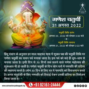 गणेश चतुर्थी:एस्ट्रो भाग्यराज गुप्त की ओर से आपको और आपके परिवार को गणेश चतुर्थी के पावन अव...