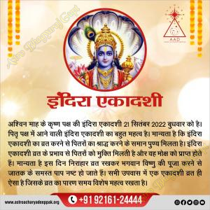 इंदिरा एकादशी:एस्ट्रो भाग्यराज गुप्त की ओर से इंदिरा एकादशी के पावन अवसर पर हार्दिक शुभकाम...