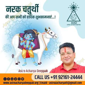 नरक चतुर्थी:आपको नरक चतुर्थी की शुभकामनाएँ| ज्योतिषाचार्य भाग्यराज गुप्त की ओर से आप सभी क...