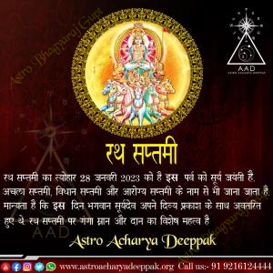 रथ सप्तमी:एस्ट्रो भाग्यराज गुप्त की ओर से रथ सप्तमी की हार्दिक शुभकामनाएं। यह शुभ दिन, सूर्...