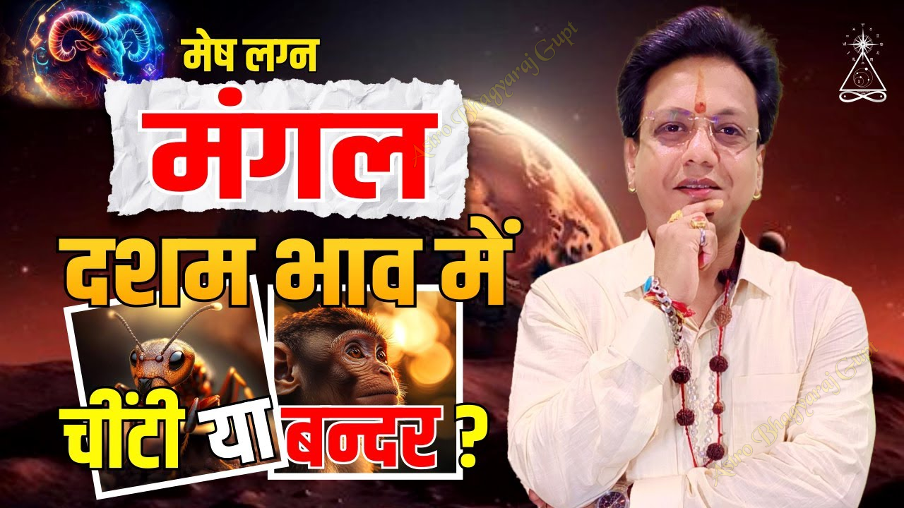 In Lal Kitab, Mars in the tenth house is called 'King God in an ant's house.' Many people find it difficult to understand the meaning of this. In reality, it has two meanings. The first is that Mars here gives a person birth into a family that may not be very well-off according to their status. Even if their social status is good, it will be like that of an ant. Later, due to the person's good fortune, the family's name will gain fame. This is because Mars, being like a king, can elevate anyone from their social position whenever he wishes. The second meaning is that for those with an Aries Ascendant, the tenth house is occupied by the sign of Capricorn. Here, Mars is exalted. Capricorn is the sign of Saturn. One must understand the subtlety of how Mars became so great in this house, which is an ant's house. You must have seen ants; they walk slowly, one after another in a line, carrying a single grain. But have you seen a monkey? A monkey, which is the significator of Mars, here takes on the form of Hanumanji. A monkey can leap from one place to another whenever it wishes, covering a long distance. It does not have the habit of moving at the speed of an ant. This is why the powerful Mars here becomes a king in the house of a fearful and cautious Saturn. This position of Mars can also occur in its own signs, Aries or Scorpio, but in Capricorn, Mars shows another form. Capricorn is Saturn's sign. If we look at the character of the planet Saturn, we will find that Saturn thinks before doing anything. He does not have the nature to go beyond a limit in any way. That is why the influence of Saturn is said to be "Shanai Shanai," meaning very slowly. Saturn uses his power very slowly and methodically. Mars is a flowing river. He is a monkey who covers long distances with a single leap, or a symbol of Hanumanji who brought the entire mountain instead of just the Sanjeevani herb. In other words, here, Saturn makes Mars use his immense power so efficiently that he gets the full benefit of every effort. In other houses or signs, Mars can also waste its power, meaning the gain is less, but the effort is more. However, here in Saturn's sign, his power starts being used very effectively, and for this reason, the person gets a lot of financial and reputational gains. This is why such a person, even if born into a family that was previously weak, will later elevate it to an excellent position. If such a person also has an elder brother, the auspicious effects of this Mars become even more pronounced. The author of the 'Saravali' text believes that Mars in this house makes a person active, valiant, unconquerable, a servant of great men, blessed with the happiness of a son, and very powerful. This is a very good statement about the result of Mars in the tenth house. However, the phrase "a servant of great men" needs to be understood with a little more subtlety. Another astrological text, 'Aryagranth,' says that Mars in the tenth house makes a person a devotee of Brahmins and elders. In reality, to understand these two facts, it is easier to comprehend that the reins of Mars are in Saturn's hands. To serve great men means that the person reaches a very high position in their life. Mars being here gives results related to jobs in the military, police, or any high-ranking position. Yes, besides this, it is a kind of blessing in the horoscopes of doctors and lawyers. When such a person reaches a high position in their work, it is a natural thing that those whom they serve will also be high-ranking people. This is probably why such a person is called a servant of great men. The meaning of serving Brahmins and elders can be understood in the same way if we consider Mars in this house to be in the form of Hanumanji. When Hanuman, a devotee of Rama, dedicates himself to service, he leaves no stone unturned to do good for others. An eighteenth-century astrologer, Vashishtji, is of the opinion that Mars in this house makes a person a scoundrel and his sons are also not good. I do not understand the reason for this at all. Here, the exalted Mars for an Aries Ascendant, aspects the Ascendant with its fourth sight, which increases the person's sense of justice or his good qualities. Second, the eighth sight of Mars from this house falls on the house of children. For Aries Ascendant, the fifth house is the sign of Leo, which is a friendly sign to Mars, so the sight of this exalted Mars on the house of children cannot give any bad effect to his sons. According to Lal Kitab, the result of this Mars will be quite weak or inauspicious if enemies of Mars are sitting in the third or sixth house. In fact, even if friendly planets are sitting in the third house, the effect of Mars is slightly reduced. This is because the planets in the third and tenth houses will be in a state of conflict, and the inauspicious Mars here can weaken its power to a great extent in this conflict. The conjunction of Mars with Jupiter in this place gives only a moderate effect. The reason for this is that for an Aries Ascendant, Jupiter becomes debilitated in the tenth house in Saturn's Capricorn sign, so it is called 'Sookha Peepal' (dry Banyan tree) in Lal Kitab or a father who 'leaves his children orphans'. Due to Jupiter being very weak, Mars also cannot give full auspicious results. Due to this conjunction, it takes a long time for a person's profession to stabilize. The presence of Mars with the Sun in this house generally gives good results for a person's profession. However, if these two planets are aspected by Saturn from the fourth house, the person's relationships with some close relatives are not good, or there is a possibility of a dispute over property or money. The presence of Mars with the Moon in this house does not give any special auspicious results to the native. Its inauspicious effect falls on the native's mother's happiness or her health. The reason for this is that here, the Moon becomes very weak by coming into its enemy Sa