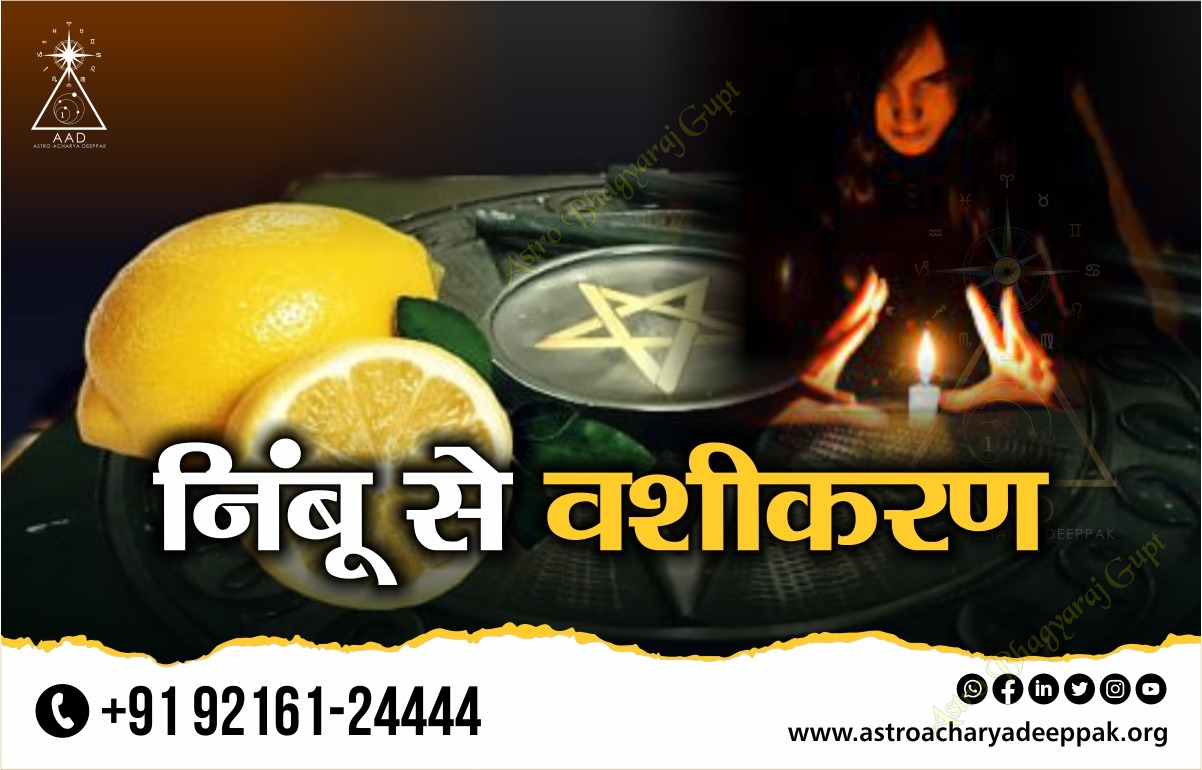 नींबू से तीव्र वशीकरण होता है आज हम आपको नींबू से वशीकरण करने के तरीके को बताने जा रहे हैं नींबू से वशीकरण करने का एक जादुई मंत्र है इसके द्वारा हम अपने शत्रु को वश में कर सकते हैं यह वशीकरण बहुत ही शक्तिशाली होता है इसके द्वारा आप कोई भी कार्य को सिद्ध कर सकते हैं|