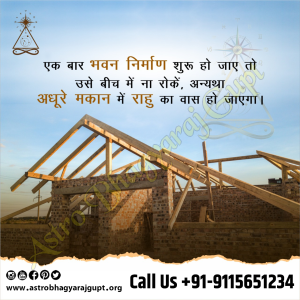 🔮 वास्तु–ज्योतिषीय सलाह ✔ भवन निर्माण शुरू करने से पहले शुभ मुहूर्त का चयन करें ✔ योजना बनाकर ही निर्माण आरंभ करें ✔ आर्थिक व कानूनी तैयारी पूरी रखें ✔ यदि किसी कारणवश निर्माण रुक गया हो, तो विशेष राहु शांति एवं वास्तु उपाय अवश्य कराएँ