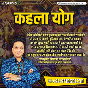In Vedic astrology, Kahala (Kahala) Yoga is a powerful Raja Yoga that makes a person courageous, intelligent, noble, and famous. This yoga is primarily formed when the ascendant lord is placed in a strong position in its exalted or own sign in the center (1, 4, 7, 10) or trine (1, 5, 9) houses.