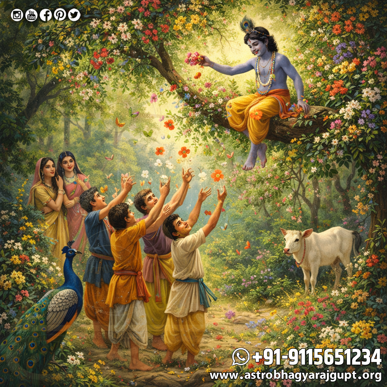 “Look! Our Kanhaiya is sitting on the tree today, distributing a treasure of flowers.”