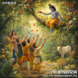 🌸✨ कन्हैया की अनोखी लीला: सखाओं संग फूलों की बरसात का सुंदर दृश्य | Krishna’s Unique Leela: A Beautiful Scene of Flower Showers with His Friends 🌸✨