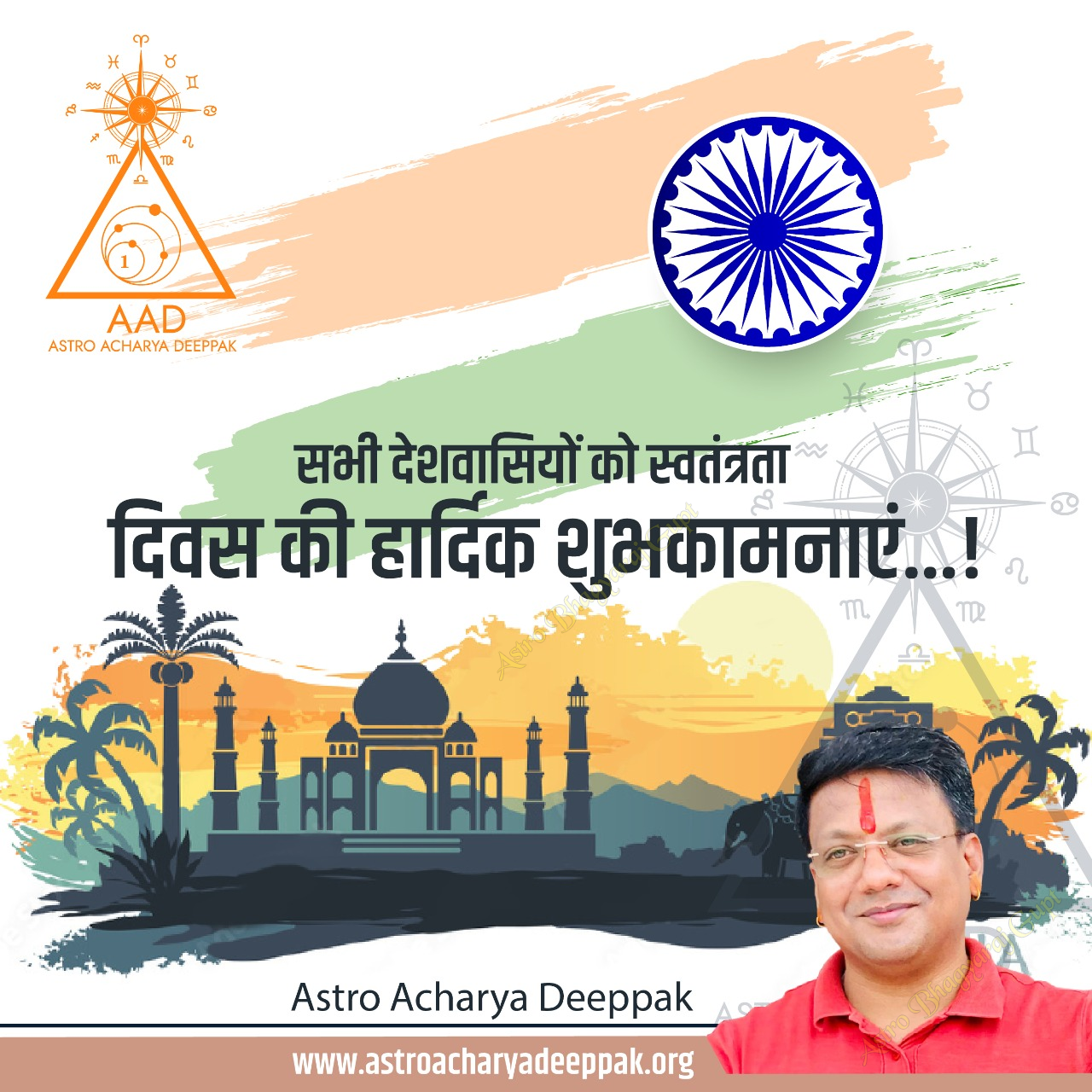 ज्योतिषाचार्य भाग्यराज गुप्त की ओर से आप सभी को स्वतंत्रता दिवस की हार्दिक शुभकामनाएं। यह दिन आपके जीवन में खुशी, समृद्धि, और देशभक्ति की भावना लाए। जय हिंद! यह दिन उन वीरों को याद करने का दिन है जिन्होंने हमारे देश की आज़ादी के लिए अपना सर्वस्व बलिदान दिया। भगत सिंह, महात्मा गांधी, सुभाष चंद्र बोस, सरदार वल्लभभाई पटेल, जवाहरलाल नेहरू और अन्य स्वतंत्रता सेनानियों के त्याग और बलिदान को हम आज भी नमन करते हैं। स्वतंत्रता दिवस हमें यह भी याद दिलाता है कि हमें अपने देश को और भी बेहतर बनाने के लिए एकजुट होकर काम करना है। हमें अपने देश को भ्रष्टाचार, गरीबी, और अन्याय से मुक्त करना है, और एक ऐसा भारत बनाना है जो हर नागरिक के लिए समान अवसर प्रदान करे।