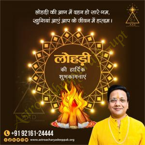 A very happy Lohri to all of you from Astro Bhagya Raj Gupt. May this festival bring new enthusiasm, happiness and prosperity in your lives. By burning all your sorrows in the holy flame of fire, move towards a new and positive future. May this auspicious festival of Lohri strengthen the love and unity between your family and friends.