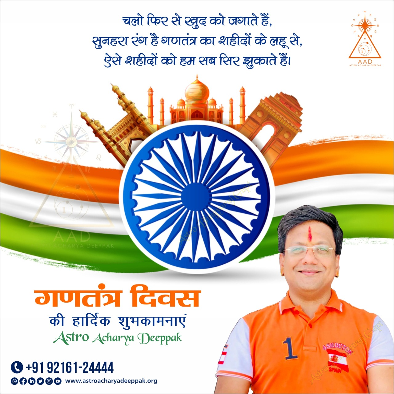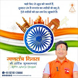 A very happy Republic Day to all of you from Astro Bhagya Raj Gupt. Today, we celebrate the independence and unity of our nation. This day reminds us of our constitution and democratic values, for which our brave freedom fighters sacrificed everything. On this national festival, let us all together resolve to make our country even more prosperous, powerful and progressive.