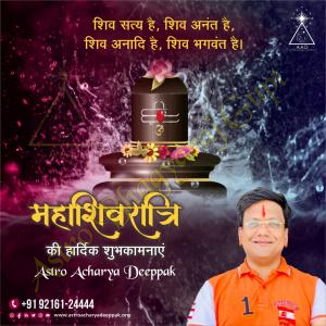 ज्योतिषाचार्य भाग्यराज गुप्त आप सभी को महाशिवरात्रि के पावन अवसर पर हार्दिक शुभकामनाएं देते हैं। इस पावन दिन, भगवान शिव की आराधना करके आशीर्वाद प्राप्त करें। शिवरात्रि का त्योहार आध्यात्मिक जागरण और मोक्ष प्राप्ति का पर्व है। इस दिन उपवास, जागरण और भजन-कीर्तन का विशेष महत्व है।