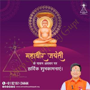 On the auspicious occasion of Mahavir Jayanti, Astro Bhagyaraj Gupt extends his warm greetings to all. Inspired by the life and teachings of Lord Mahavir, let us all strive to follow the path of non-violence, compassion, and renunciation.