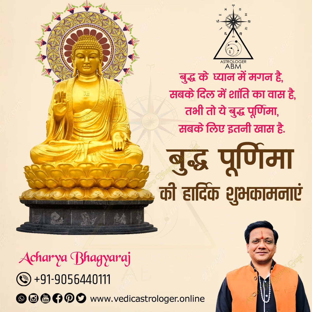 Wishing you and your family a very Happy Buddha Purnima from Astro Bhagyaraj Gupt. May this auspicious festival bring happiness, peace, and prosperity to your life. May you lead a meaningful life by following the path shown by Lord Buddha.