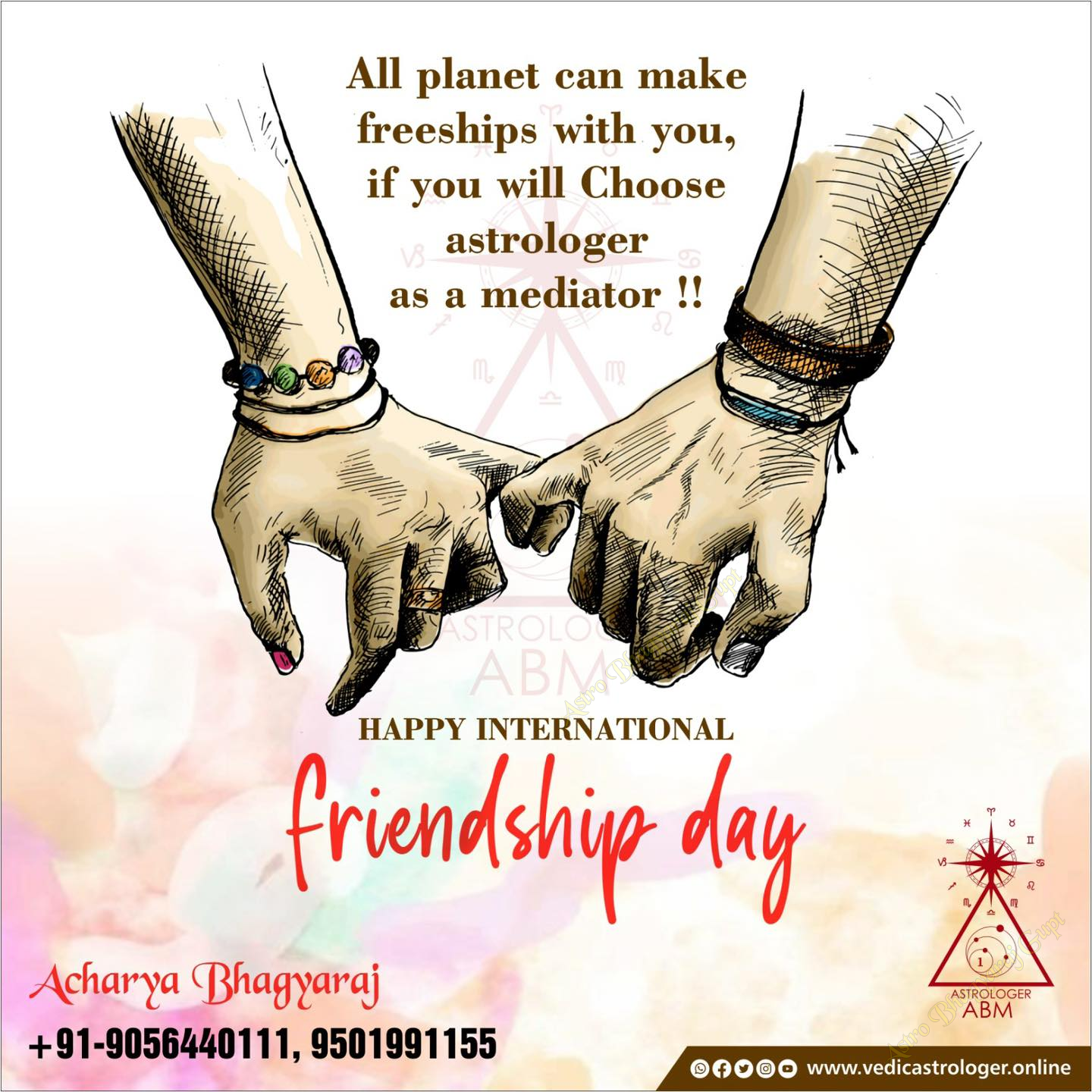 Happy International Friendship Day. From Astro Bhagyaraj Gupt, we extend warm wishes to all the wonderful friends who brighten our lives. True friendship is a celestial gift, a bond that transcends time and space, much like the cosmic connections we explore in astrology. May your friendships be filled with joy, understanding, and unwavering support. Celebrate the beautiful connections that make life meaningful, and cherish the stars that guide you together.