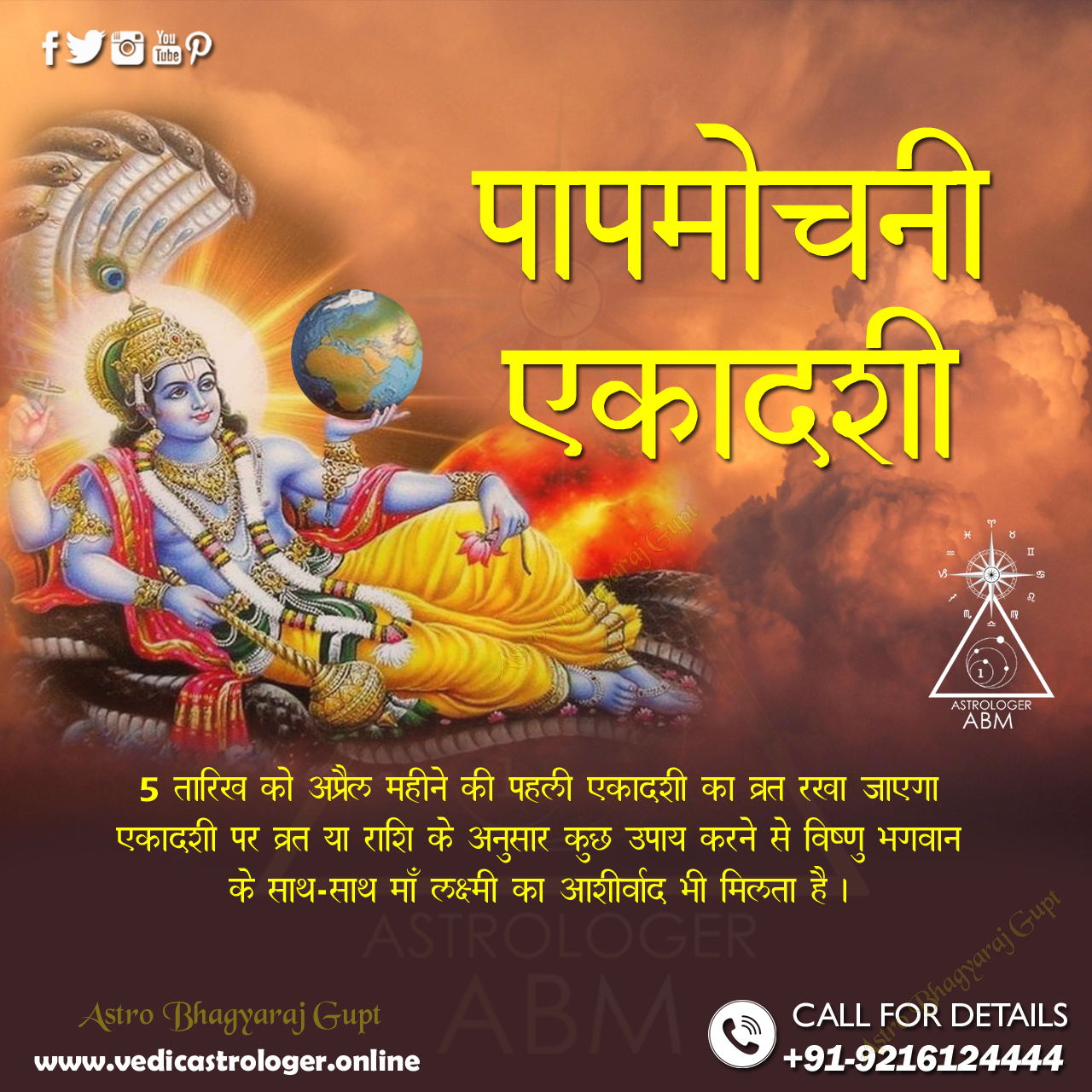 Astrologer Bhagyaraj Gupt extends warm congratulations on the auspicious occasion of Papmochani Ekadashi. Does Papmochani Ekadashi really destroy all sins? What is its story? Learn about Papmochani Ekadashi. The fast of Papmochani Ekadashi will be observed on April 5, 2024. This day is Friday, the day of Goddess Lakshmi. In such a situation, Papmochani Ekadashi presents a special opportunity to please Lord Vishnu and his consort Goddess Lakshmi. It is said in the Puranas that as a result of the Ekadashi fast, the sins committed by a person knowingly or unknowingly are destroyed, and he gets the benefits of all comforts and conveniences. After death, he is also freed from the bondage of birth and death. The same is described in the story of Papmochani Ekadashi. Learn this story. Papmochani Ekadashi Vrat Katha (Story of the Papmochani Ekadashi Fast): According to the Puranas, Lord Krishna himself explained the importance of the Papmochani Ekadashi fast story to Arjuna. According to the story, there was a very beautiful forest named Chaitrarath, where apsaras (celestial nymphs) used to roam. In this forest, a sage named Medhavi was performing penance. Rishi Medhavi was a devotee of Shiva, but the apsaras were followers of Kamadeva, who was an enemy of Shiva. Therefore, at one time, Kamadeva sent an apsara named Manjughosha to disrupt the penance of Rishi Medhavi. If you desire wealth and prosperity, then on the day of Papmochani Ekadashi, you must place a few grains of rice under the lamp while lighting it. After the lamp has burned completely, tie those grains of rice in a red cloth and keep it in your safe. By doing this, you will never face financial crisis in life. If you want happiness in married life, then on the day of Papmochani Ekadashi, husband and wife should worship Tulsi (holy basil) together. They should tie a Kalava (sacred thread) around the Tulsi plant together. This strengthens the relationship and increases love between them. Rishi Medhavi Commits a Sin: Manjughosha succeeded in disrupting the penance of Medhavi Muni through her dance, singing, and beauty. The sage was captivated by the beauty of the apsara and spent years in pleasure with her. After a long time, Manjughosha asked the sage for permission to return, at which point Rishi Medhavi realized his mistake and the breaking of his penance. Through his spiritual power, he came to know how Manjughosha had disrupted his penance. The Beautiful Woman and the Sage Found Liberation from Sins in This Way: The sage was angered by this act of the apsara and cursed Manjughosha to become a Pisachini (demoness). After this, the apsara fell at the feet of the sage and asked for a way to get rid of the curse. Upon Manjughosha's repeated requests, Rishi Medhavi told her the way to get rid of the curse, saying that by observing the Papmochani Ekadashi fast, all your sins will be destroyed, and you will regain your former form. Rishi Medhavi had also committed a sin; in this way, all his merits were destroyed. For atonement, Rishi Medhavi also observed the Papmochani Ekadashi fast. In this way, by observing the Papmochani Ekadashi fast, the apsara Manjughosha was freed from the curse and returned to heaven as an apsara, and all the sins of Rishi Medhavi were also eliminated.