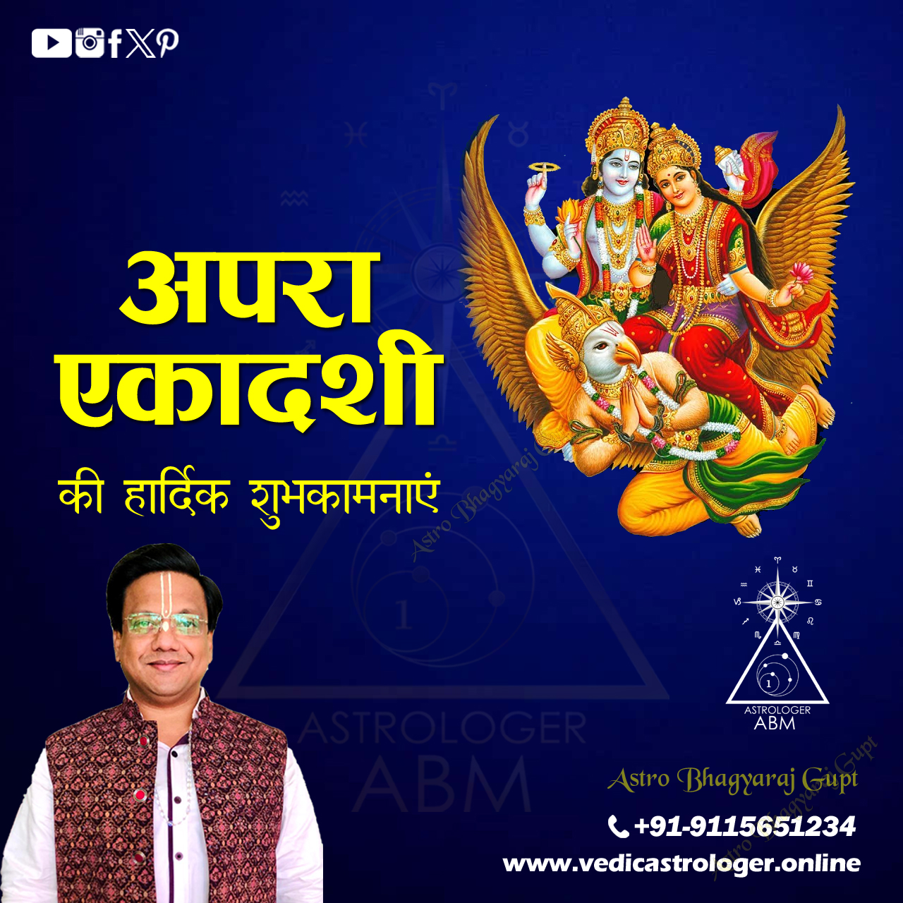 Astrologer Bhagyaraj Gupt wishes you a blessed Apara Ekadashi. Apara Ekadashi, observed during the Krishna Paksha (waning phase) of the Hindu month of Jyeshtha, holds significant importance in Vedic astrology. This sacred day is dedicated to Lord Vishnu and is believed to bestow immense spiritual benefits upon devotees. 'Apara' translates to 'boundless' or 'limitless,' signifying the boundless merits one can attain by observing this fast. Astrologically, it is considered highly auspicious for resolving past karmic debts, purifying the soul, and achieving liberation. Devotees who observe Apara Ekadashi with sincerity and devotion are said to receive blessings of prosperity, happiness, and spiritual growth. It is a time for introspection, charity, and chanting Vishnu mantras, fostering a deeper connection with the divine.