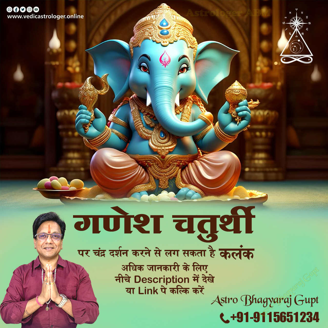 Astro Bhagyaraj Gupt extends warm and heartfelt wishes to you and your family on the auspicious occasion of Ganesh Chaturthi. May Lord Ganesha, the remover of obstacles and the harbinger of good fortune, bless you with wisdom, prosperity, and happiness. We pray that this festive season brings joy, peace, and success into your lives. May the divine grace of Ganpati Bappa always be with you. Happy Ganesh Chaturthi.
