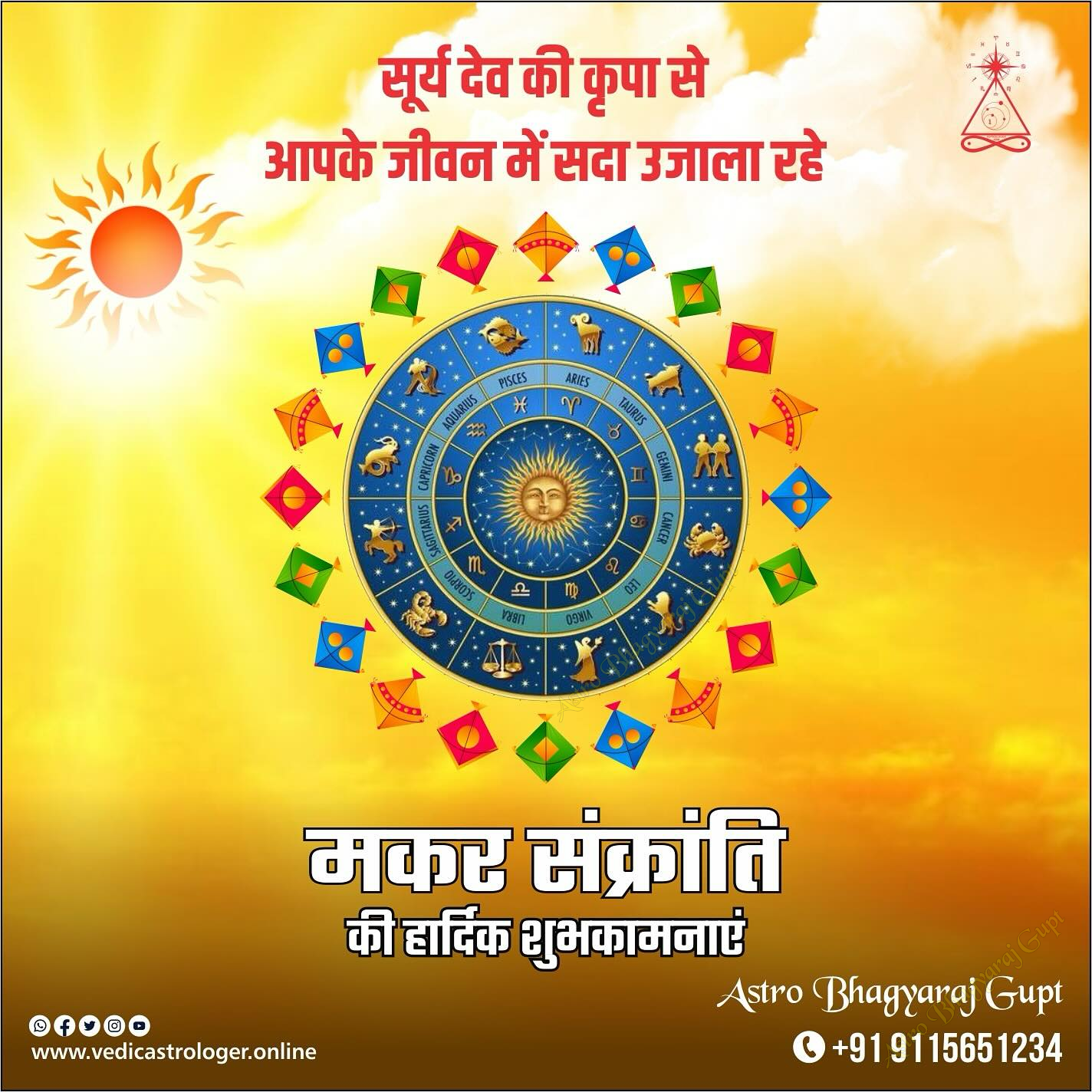 🥜Happy Makar Sankranti🍿 Astro Bhagyaraj Gupt extends warm and joyous Makar Sankranti greetings to everyone. May this auspicious festival, marking the sun's transition into Capricorn, bring abundant prosperity, happiness, and new beginnings into your lives. As we celebrate the harvest and the soaring spirit of kites, let us embrace the warmth of the sun and the sweetness of til-gul. May your life be filled with the same vibrancy and joy that fills the skies on this special day. Wishing you and your loved ones a very Happy Makar Sankranti.