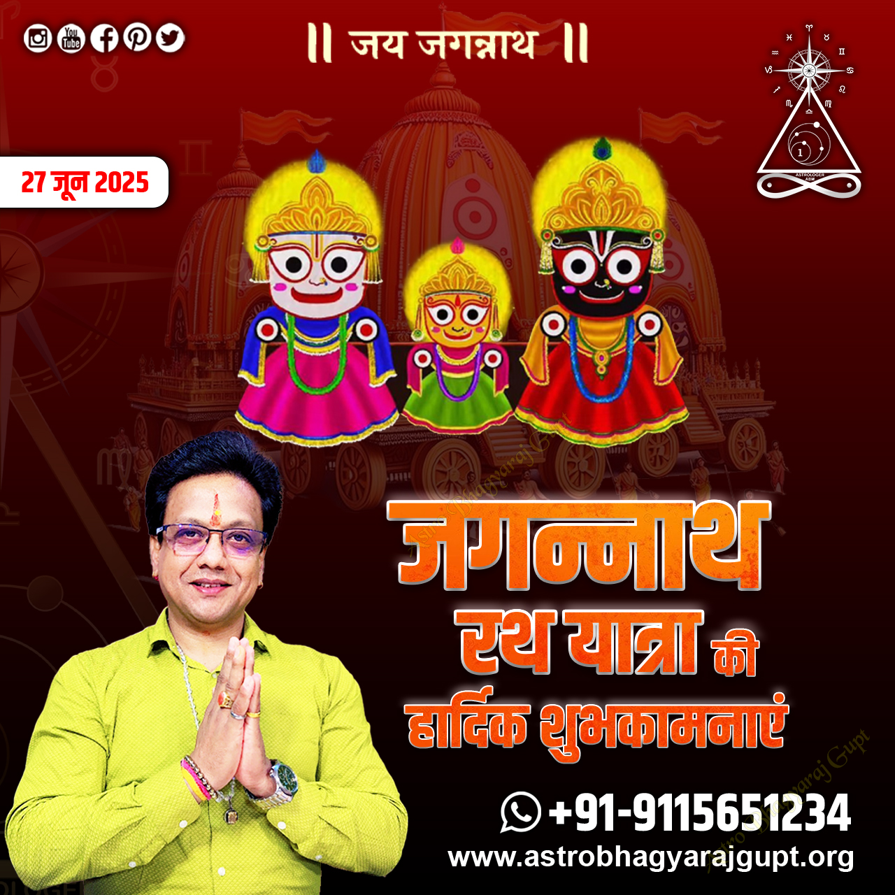 From Astrologer Astro Bhagyaraj Gupt, wishing you all the divine blessings on the auspicious occasion of Jagannath Rath Yatra 2025.